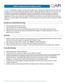 Directions: Leadership rounding is a process where leaders (e.g., administrator, department heads, and nurse managers) are out in the building with staff and residents, talking with them directly about care and services provided in the organization including QAPI initiatives. Rounding with staff and residents is an effective method for leaders to hear firsthand what is going well and what issues need to be addressed within the organization. It serves as an important signal of leadership’s commitment to performance improvement, and promotes a culture of QAPI in the organization. Use this to guide your rounds to monitor the progress of QAPI initiatives.